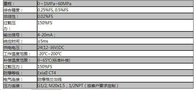 PT124B-285中高温型防爆压力变送器选用进口耐高温敏感元件组装,防爆外壳,带LCD显示。传感器探头能在250℃高温下长期稳定工作。探头与防爆外壳之间采用散热片装置隔离,有效的防止了热传导。应用于液压、油田,矿井,化工,电力,锅炉,天然气等自动化领域的流体压力测量与控制。